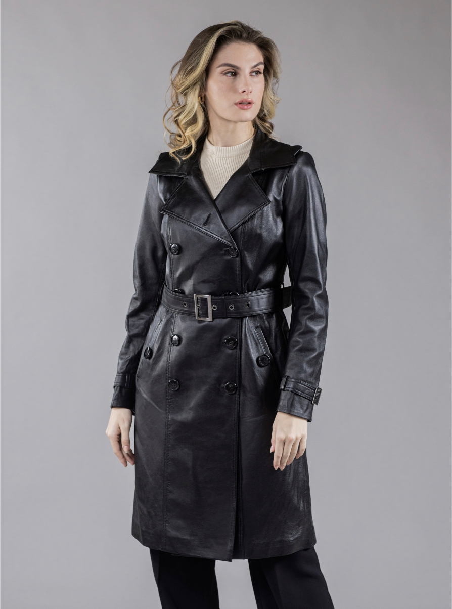 Полупальто - «френч» из натуральной кожи – новинка весенней коллекции сезона 2023 от «Тверской меховой». Полупальто «Бренда» позволит создать строгий подтянутый образ с элементами стиля «милитари». Двубортная застежка на пуговицы, классический английский воротник, который можно застегнуть «под горло», оставив лишь строгий отложной воротник, пояс с металлической пряжкой, погоны и кокетка на пуговицах – все эти элементы кроя куртки «френч» вновь актуальны. Прорезные карманы удобны и функциональны. Длина полупальто 100 см позволяет комбинировать его с классическими брюками, строгой юбкой или деловым платьем. Черный цвет куртки «Бренда» – отличная база для экспериментов с яркими аксессуарами. Создайте запоминающийся образ со множеством деталей этой весной!Характеристики